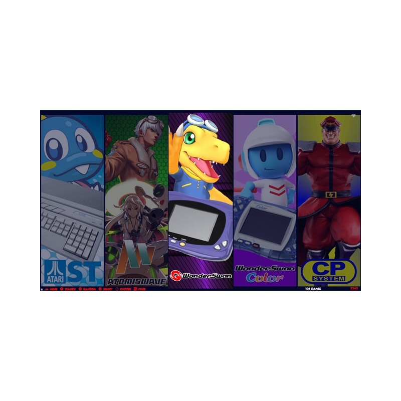 Panasonic 3d0; Amiga 500; Amiga 1200; Amiga cd32; Amastrad CPC; Amstrad GX 4000; Arcade (Mame) ; Atari 800; Atari 2600; Atari 5200; Atari 7800; Atari Lynx; Atari S; Atomiswave; Commodore 64; Coleco vision; Cps1 ; Cps2; Cps3; Daphne; Dreamcast; Family Disk System; Game & watch; Game cube; Game gear; Game boy; Game boy Color; Game boy Advance; Intellivision; Mastersystem;Megadrive; Msx; N64; Naomi; Neocd; Nes; Ngp; Ngpc; Odissey; Openbor; Pc98; Pcengine; Pcenginecd;Pcfx; Psp; Psx; Saturn; Sega32X; Sg 1000; Supergrafx; Super nintendo;Watara supervision; Uzebox; Vectrex; Virtualboy; Wonderswan; Wonderswan color; X68000; Zx81; Zx Spectrum